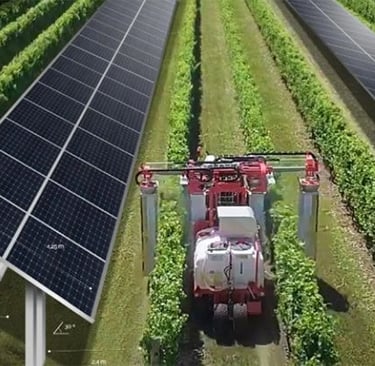 Agrovoltaica: generación de energía solar sobre superficies agrícolas, maximizando el uso del terreno.